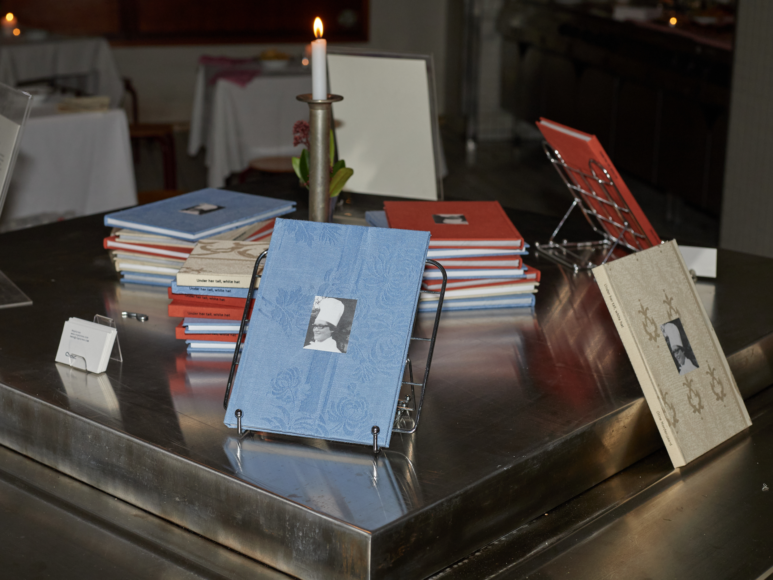 The launch took place in an old industrial kitchen that has been out of use for over 10 years. There was a display of the books, a small exhibtion of archive material that was not used in the sequence of the book, and a tapas menu created by Olines grandma and cooked by Oline.